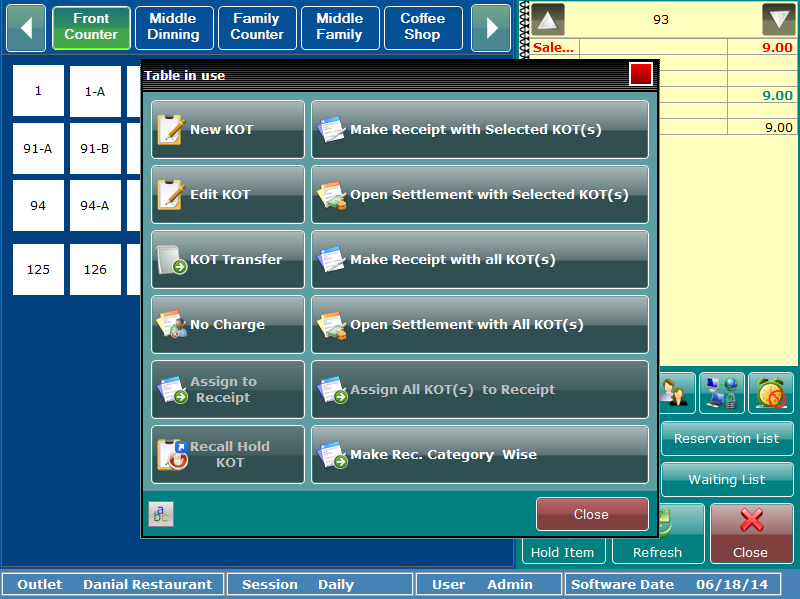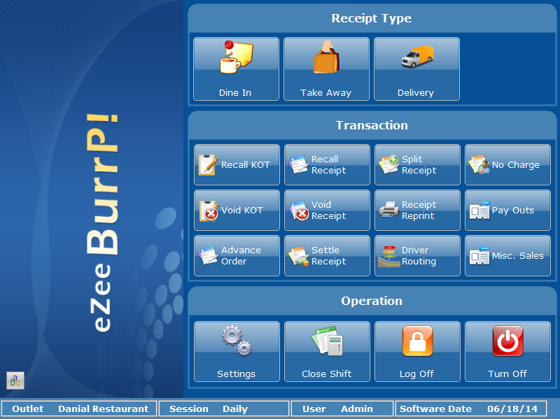 eZee BurrP! Comes with very easy interface to make KOT, Guest Check, Receipt, Settlement, Split Receipt, Table Change etc.