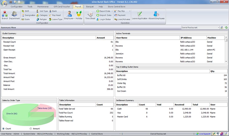 Software works on touch screen as well as on desktops. The main modules include table reservation, material management, web based reporting, kitchen display system, loyalty programs, promotions and gift vouchers, payroll, definition of standard recipe and lot more. Restaurant managers can easily manage menu items, inventory, indent, new orders, delivery and also reservation with eZee BurrP! point of sale software.